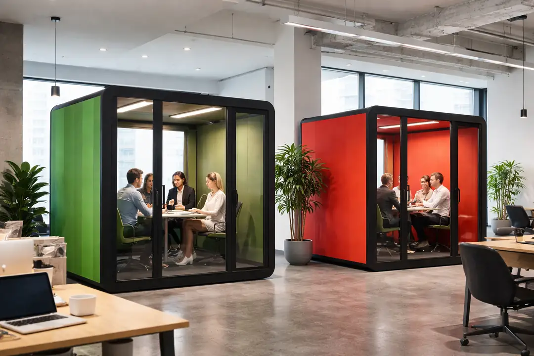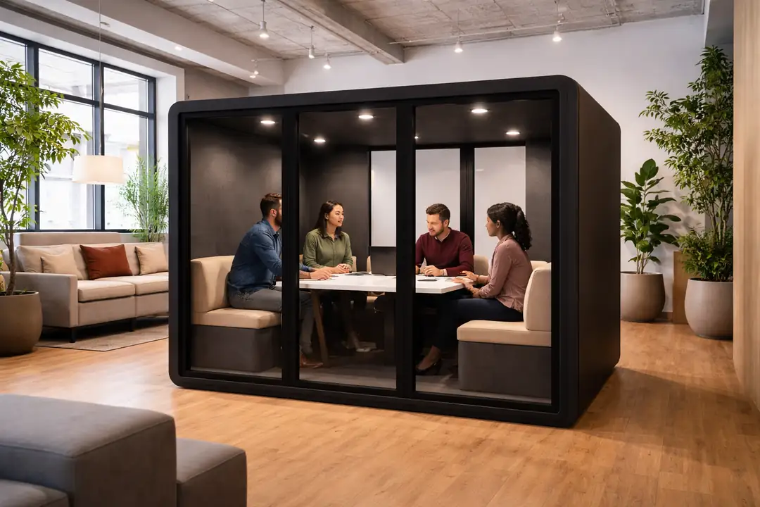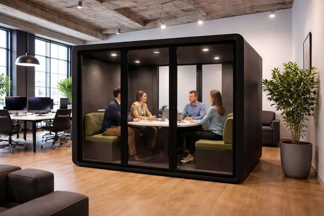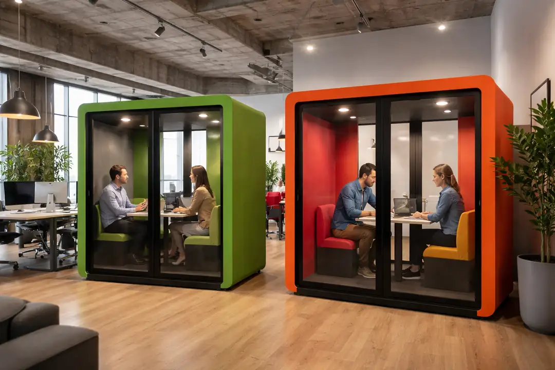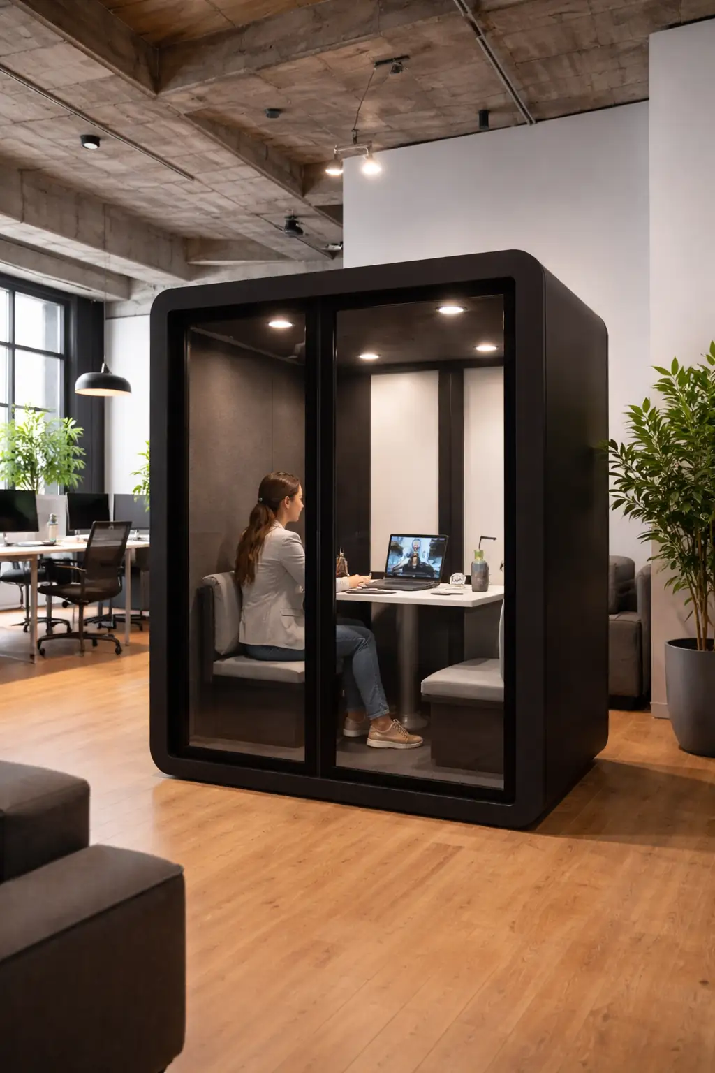 Açık ofisler ve ortak alanlar için şık, kompakt ve ses yalıtımlı görüşme kabinleri ile çalışma konforunu artırın.
