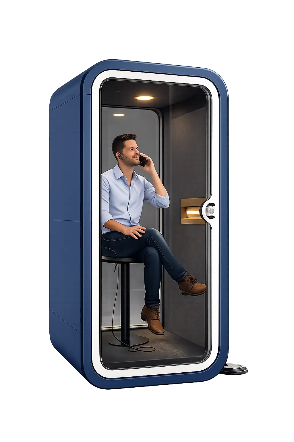 Office phone booth, çalışma ortamlarında gürültüyü azaltmak ve çalışanların verimliliğini artırmak amacıyla tasarlanmış özel bir kabin türüdür. Bu kabine telefon görüşmeleri yapmak için giren çalışanlar, dışarıdan gelebilecek seslerden ve ofis içindeki diğer gürültülerden izole edilerek konuşma kalitesini artırabilirler.