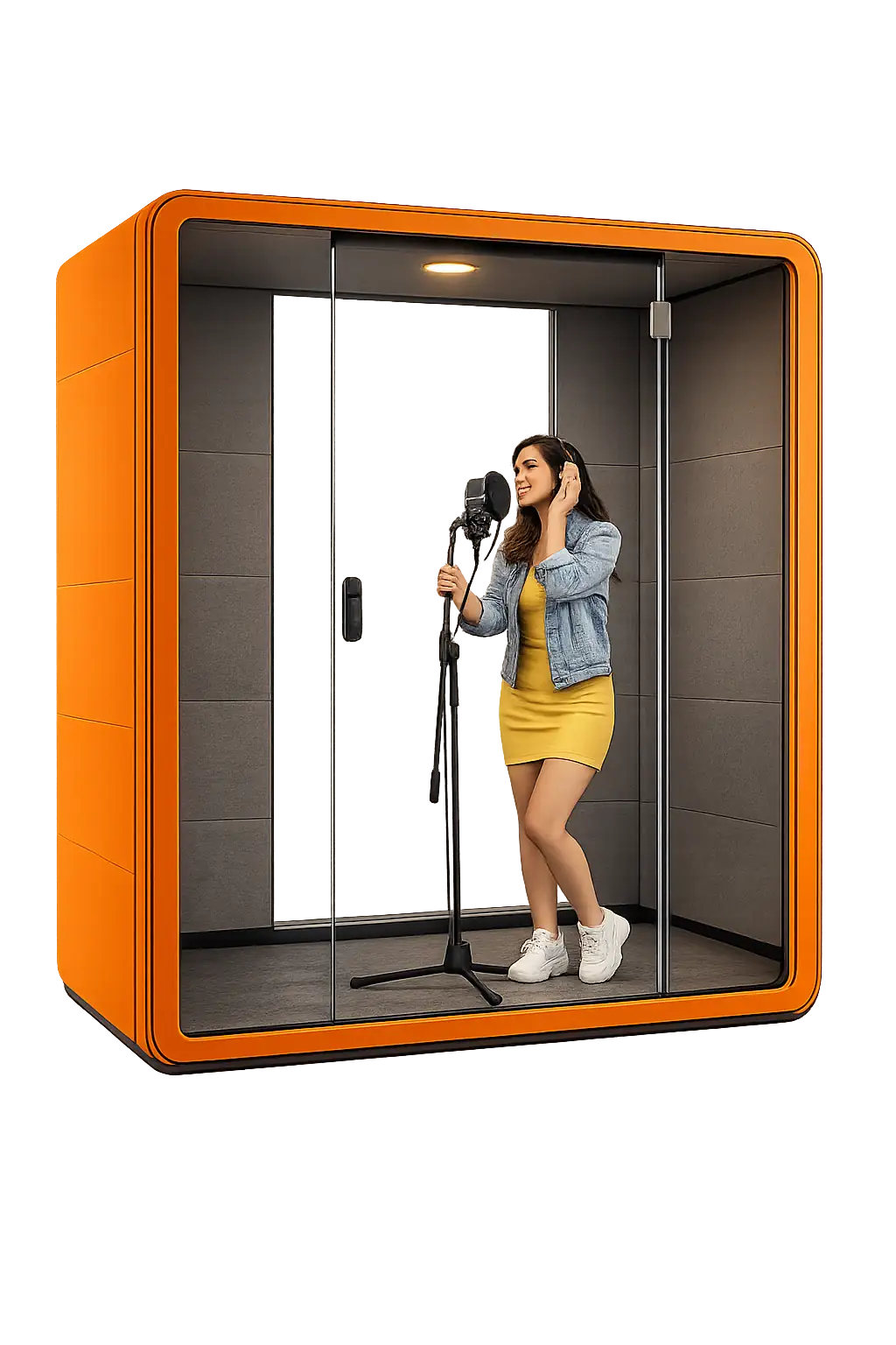 ,Kaydedilen müziklerin daha kaliteli ve profesyonel bir şekilde kaydedilmesi sağlanır. Ses kayıt kabini, ses yalıtımı için özel olarak tasarlanmış malzemelerle kaplanmıştır. Bu malzemeler, sesin yansımasını engelleyerek, dışarıdan gelen seslerin odada yankılanmasını önler.