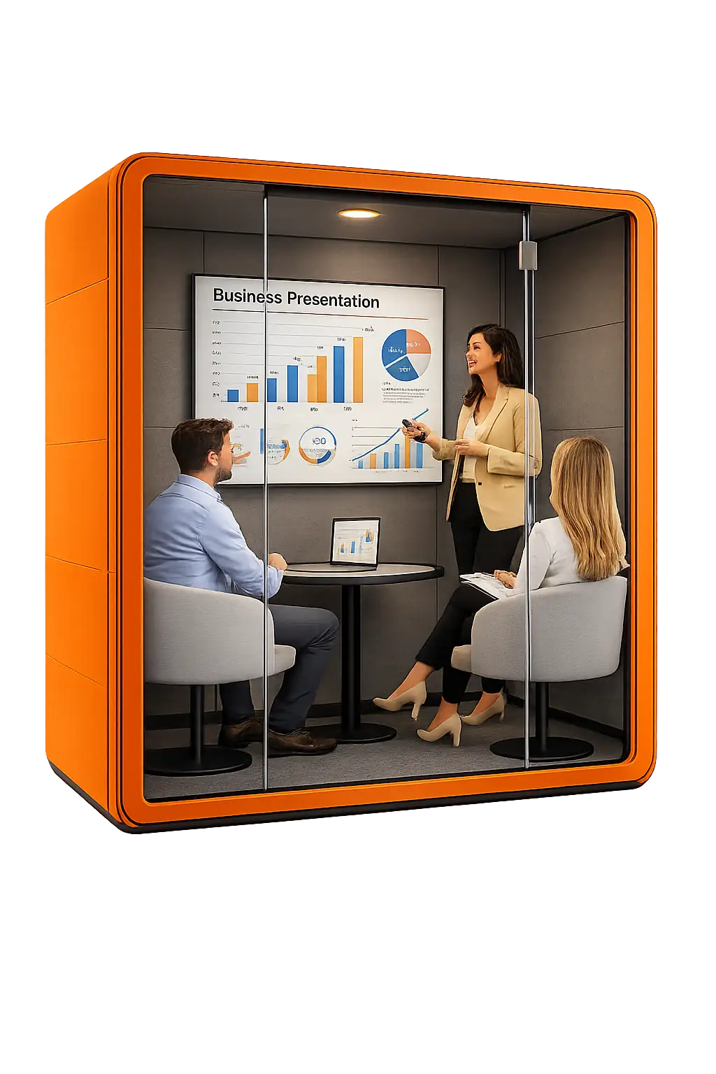 Bu noktada, Akustik Sunum Kabini profesyonel bir sunum deneyimi için ideal bir çözüm sunar. Bu özel kabin, ses yalıtımı ve akustik düzenlemelerle donatılmıştır. Bu sayede sunum yapan kişi, içeride sessiz bir ortamda konuşabilir ve dinleyicilerine net bir şekilde ulaşabilir. Kabin ayrıca dışarıdan gelen gürültüyü engeller, böylece sunumun kalitesini artırır ve dinleyicilerin dikkatini dağıtmaz. Sonuç olarak, Akustik Sunum Kabini, sunumunuzu daha etkileyici ve başarılı hale getirmenize yardımcı olur.